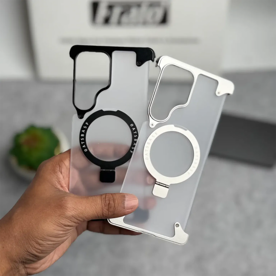 OATSBASF Metal Kickstand Frameless Magsafe PC Matte Case for Samsung Galxy S24 Ultra
