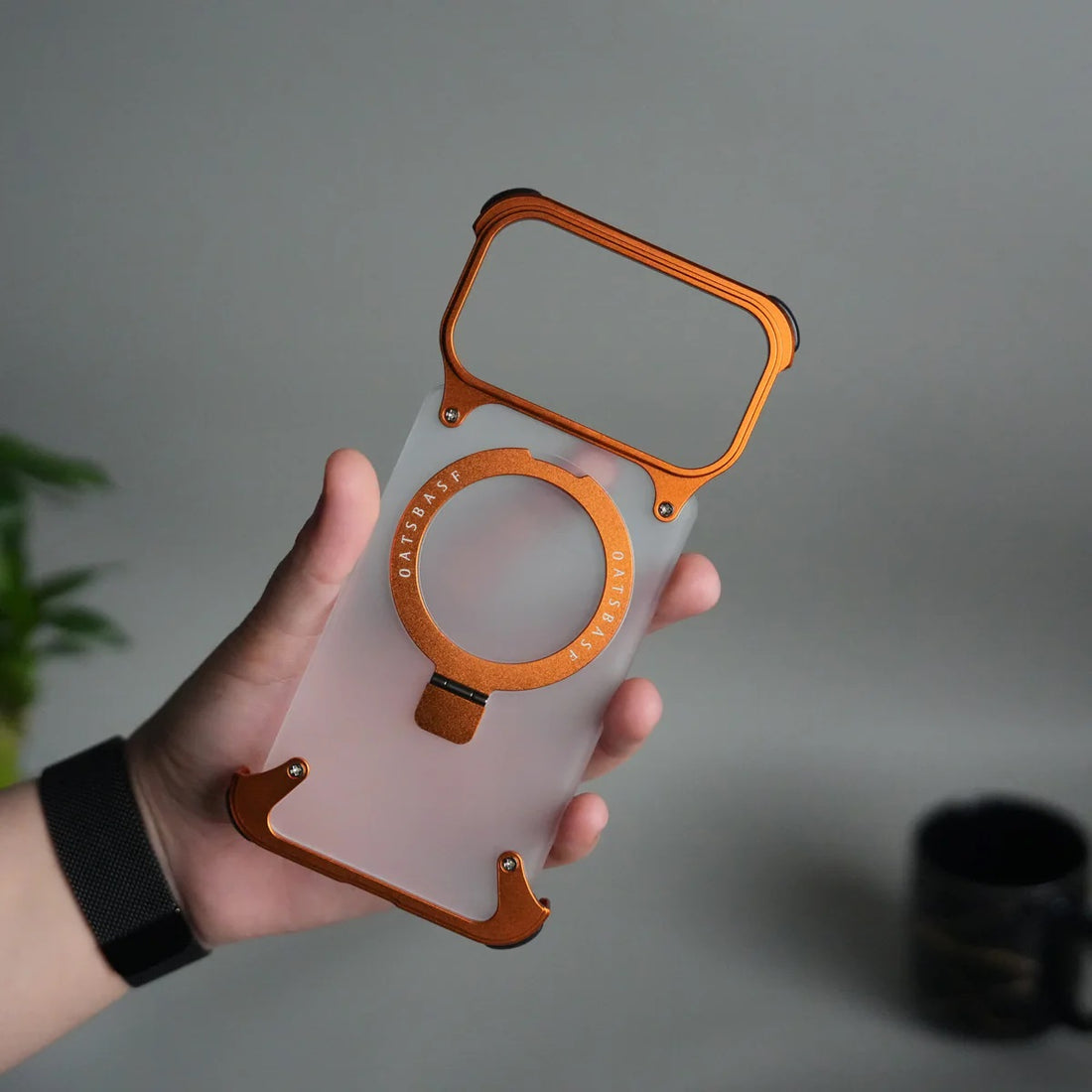 Z-Shaped 360ยฐ Rotating Magnetic Holder Aluminum Alloy Frameless Frame for iPhone 17 Pro Max