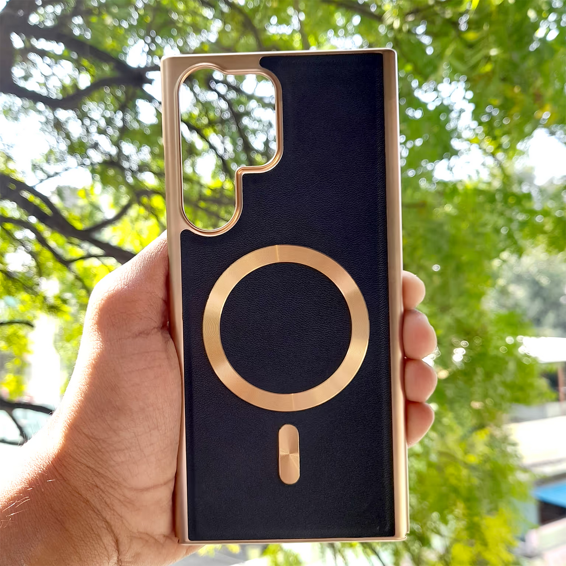 Electroplated Leather Texture Magnetic Charging Compatible Case for Samsung S25