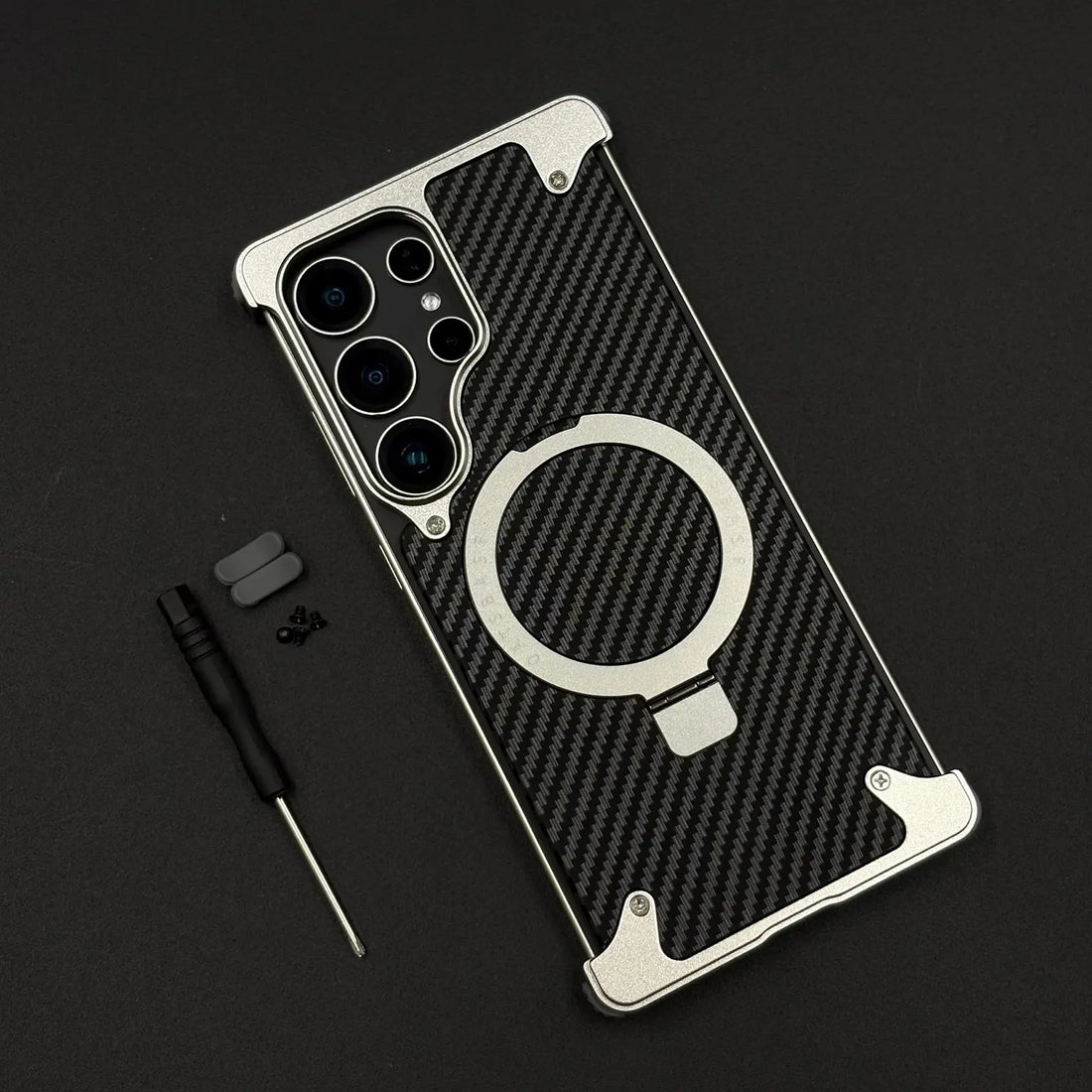 OATSBASF Carbon Fiber Metal Kickstand Frameless Magsafe Case for Samsung Galaxy S24 Ultra