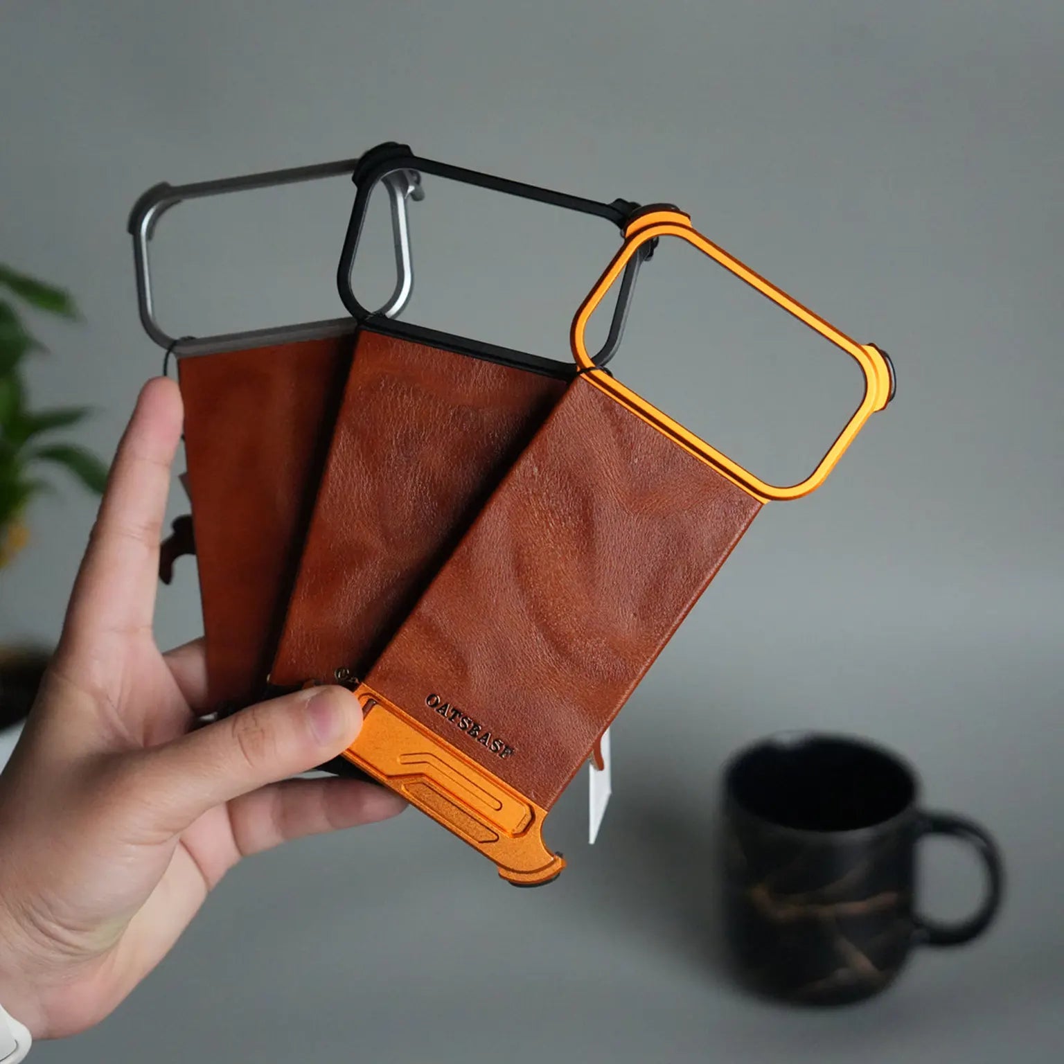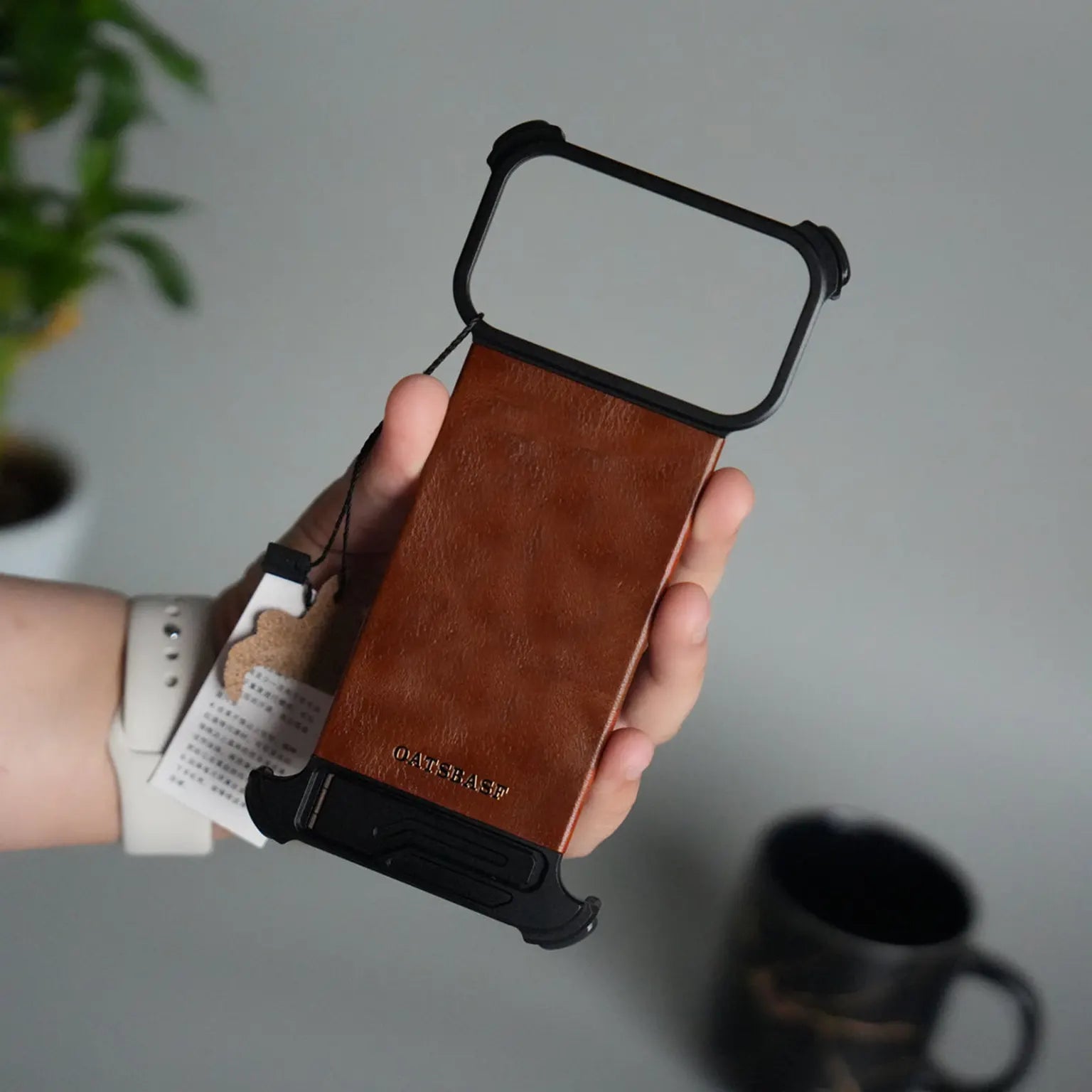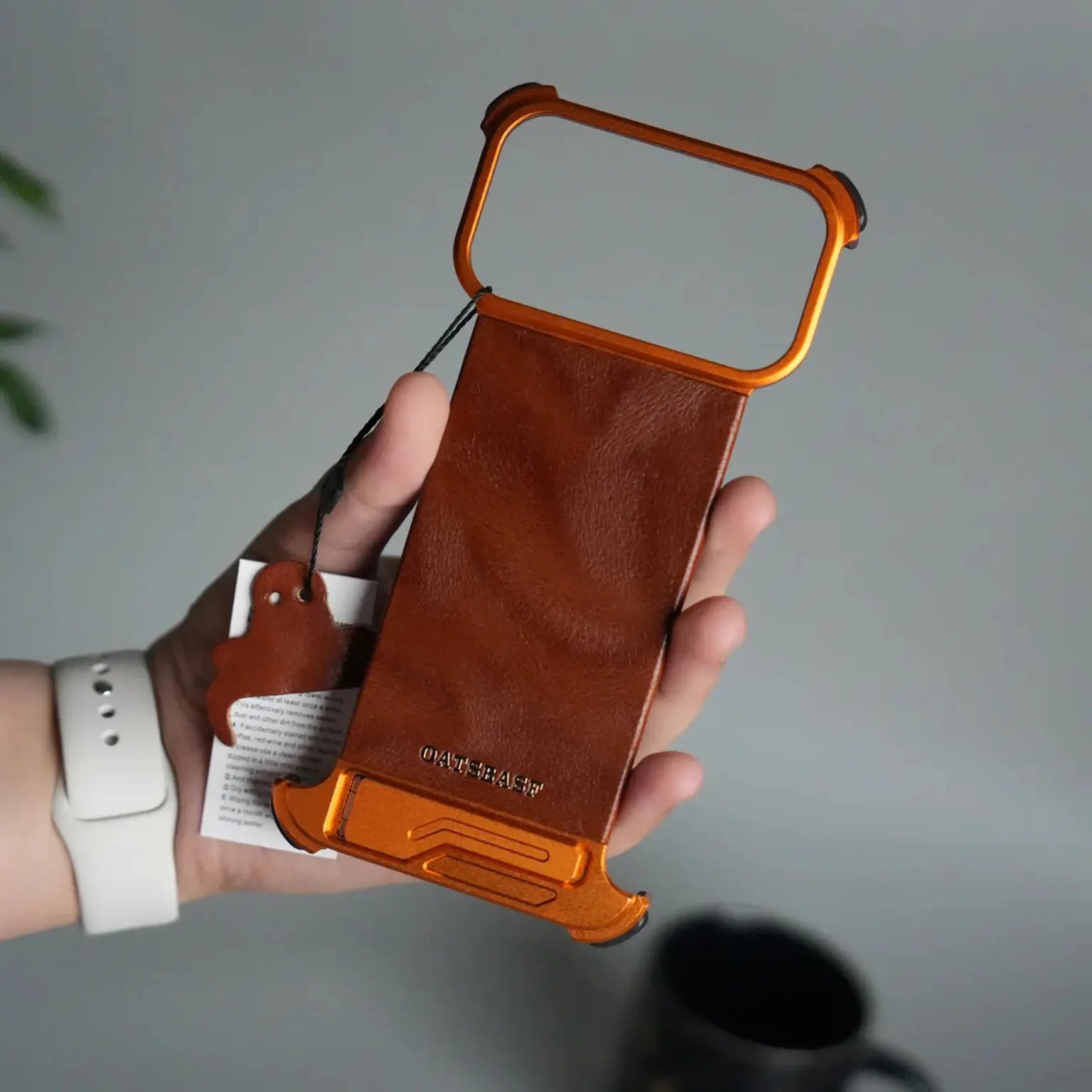 OATSBASF Magnetic Leather Metal Hidden Kickstand Frameless Magsafe Case for iPhone 17 Pro