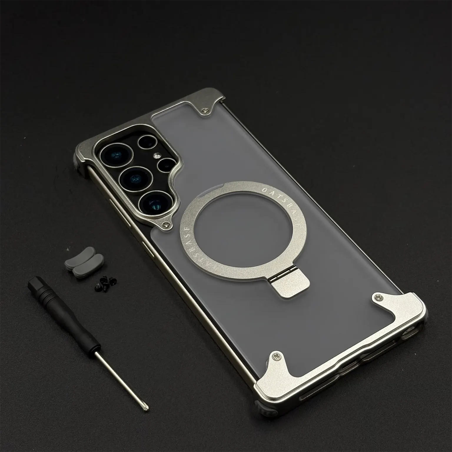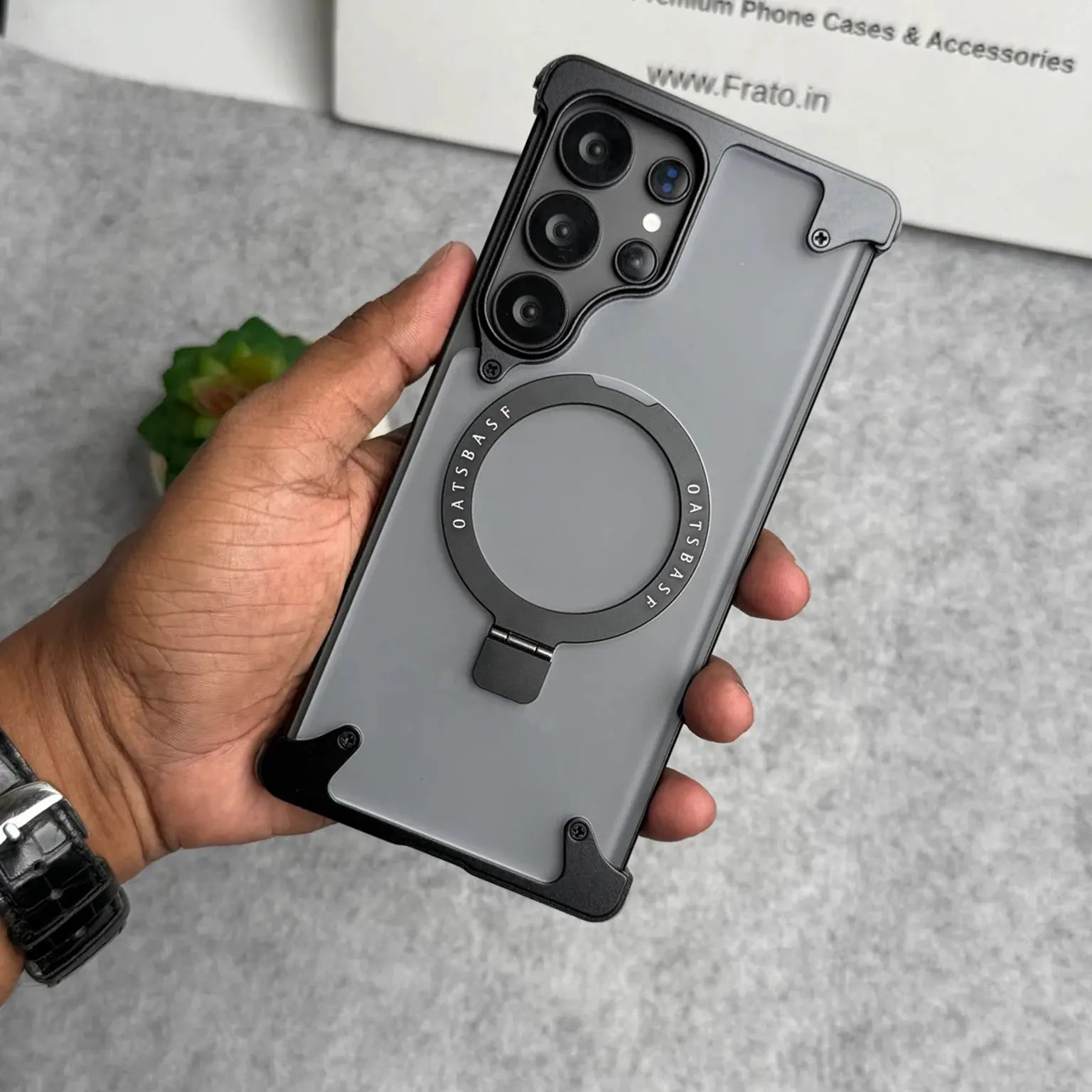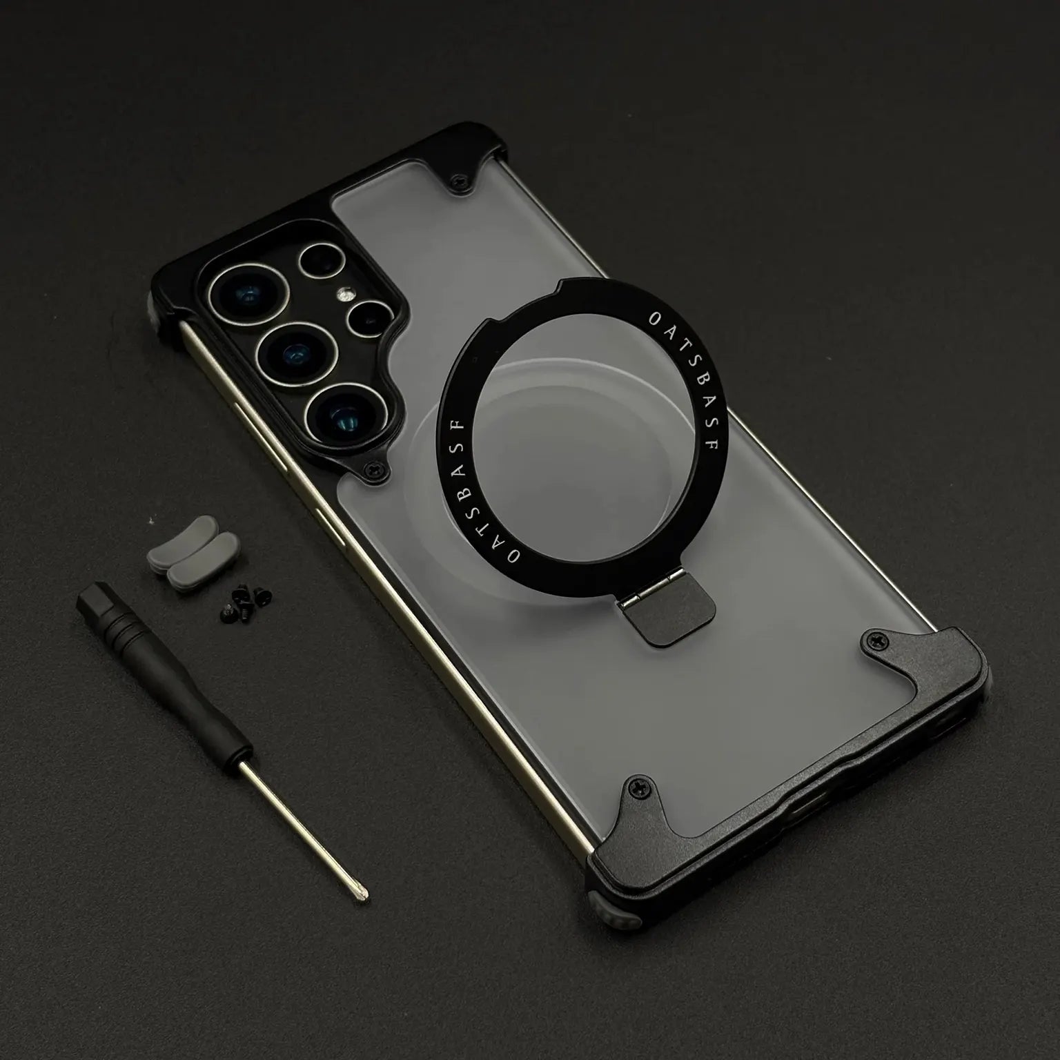 OATSBASF Metal Kickstand Frameless Magsafe PC Matte Case for Samsung Galxy S25 Ultra