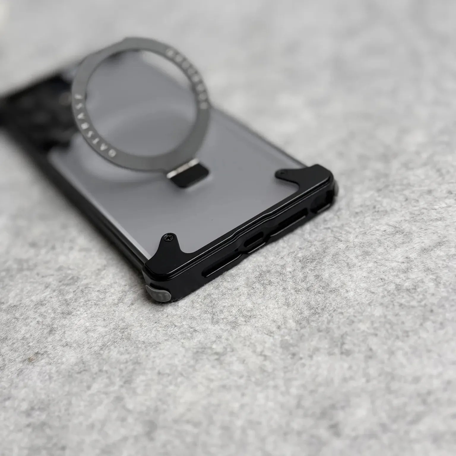 The metal case, seamlessly blending ruggedness and elegance. Featuring metal borders, impact-resistant cushions, and a slim hard back for military-grade durability. With frameless sides and a comfortable and stylish grip.