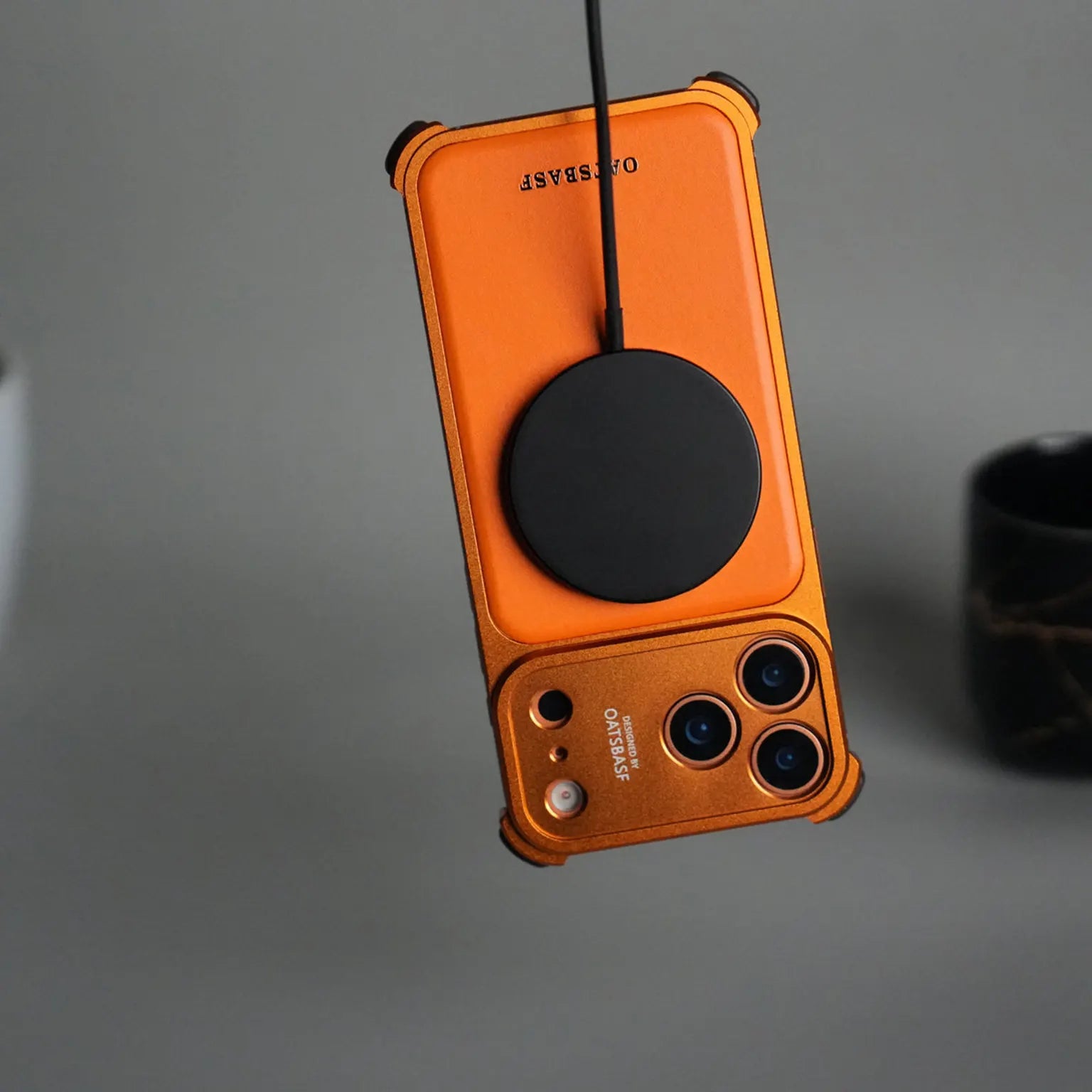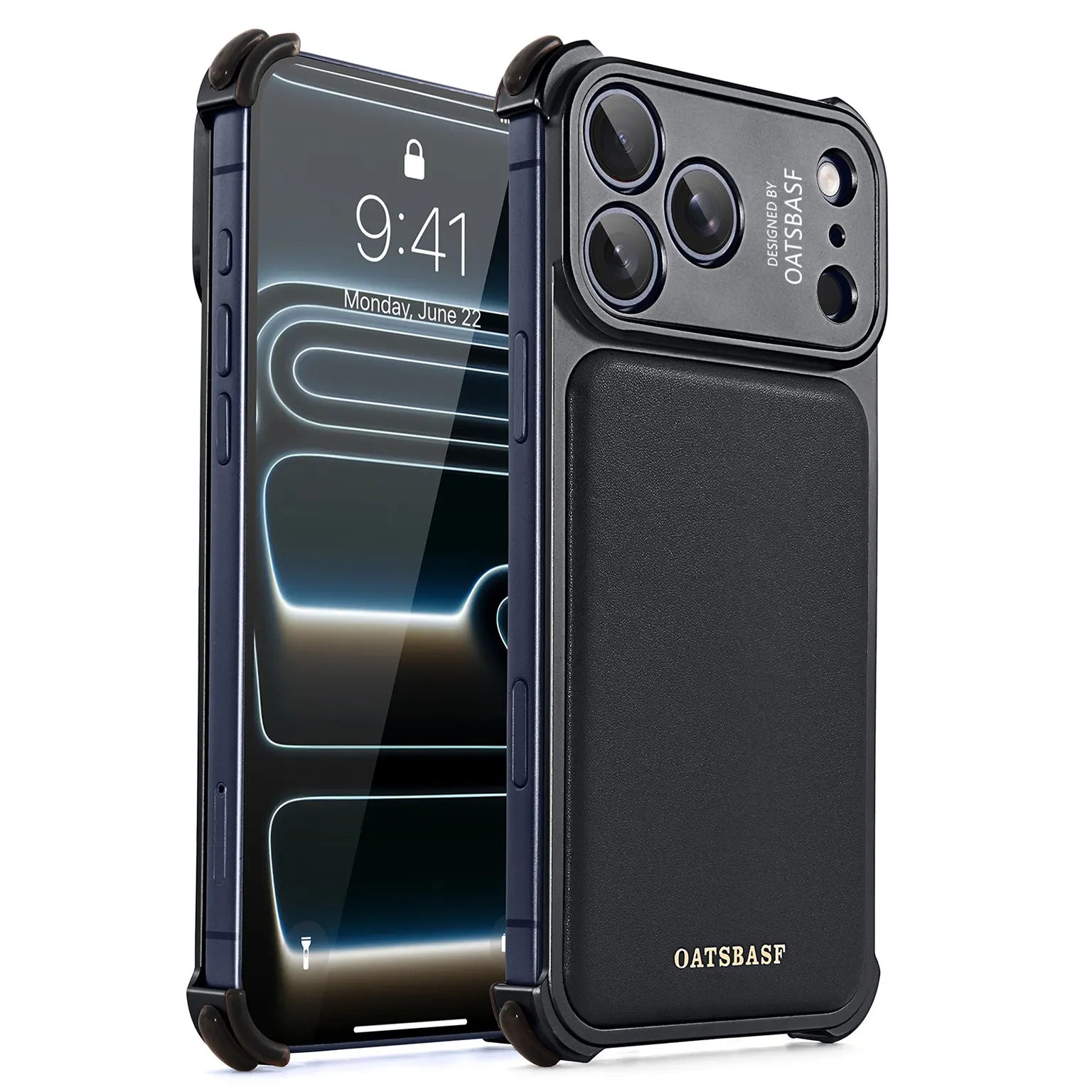 OATSBASF Metal Skeleton Shape PU Leather Magnetic Frameless Magsafe Case for iPhone 17 Pro