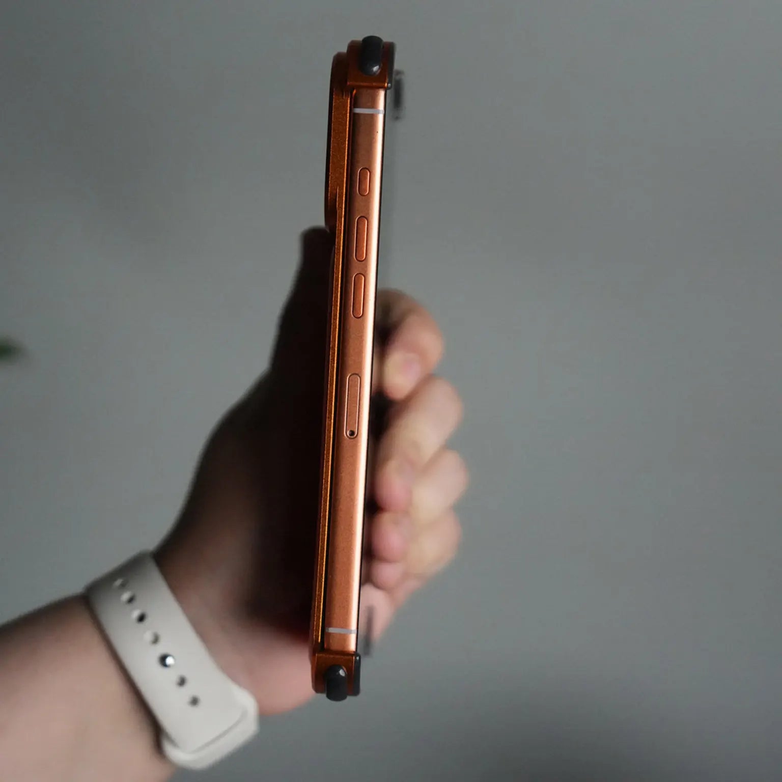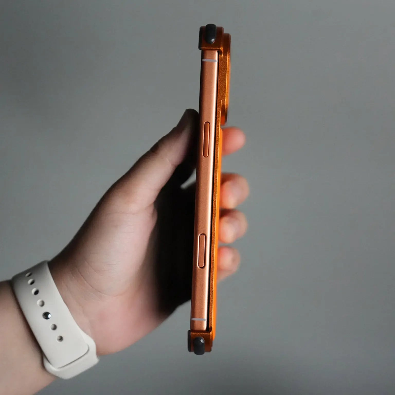 The metal case, seamlessly blending ruggedness and elegance. Featuring metal borders, impact-resistant cushions, and a slim hard back for military-grade durability. With frameless sides and a comfortable and stylish grip.