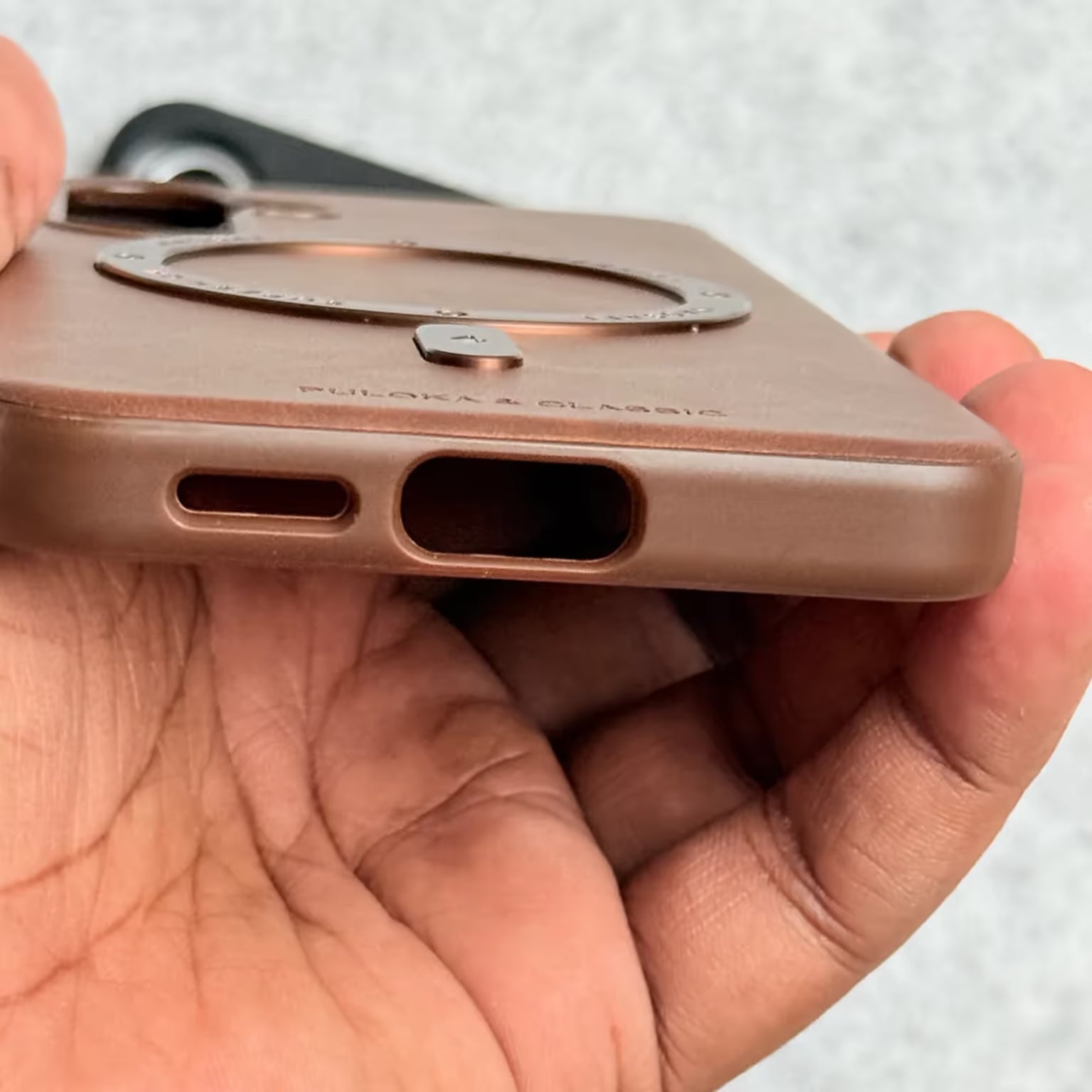 This Samsung S25 case combines premium PU leather construction with strategically engineered cutouts that provide unobstructed access to every button, port, and sensor. The precision-designed openings ensure your device's full functionality remains intact—from volume controls to the charging port—without compromising the protective shell. Paired with the integrated metal MagSafe ring for reliable wireless charging alignment, this case delivers comprehensive protection while maintaining complete operational freedom.