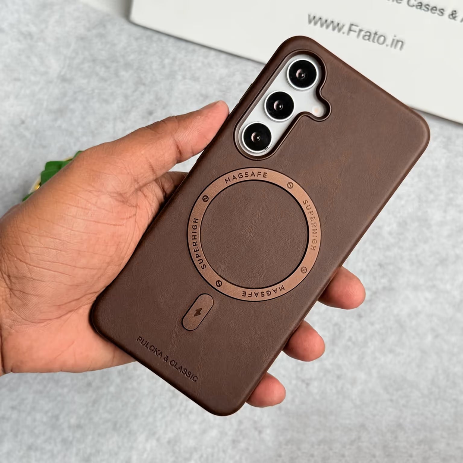 Puloka PU Leather Metal Magsafe Ring Case for Samsung S25