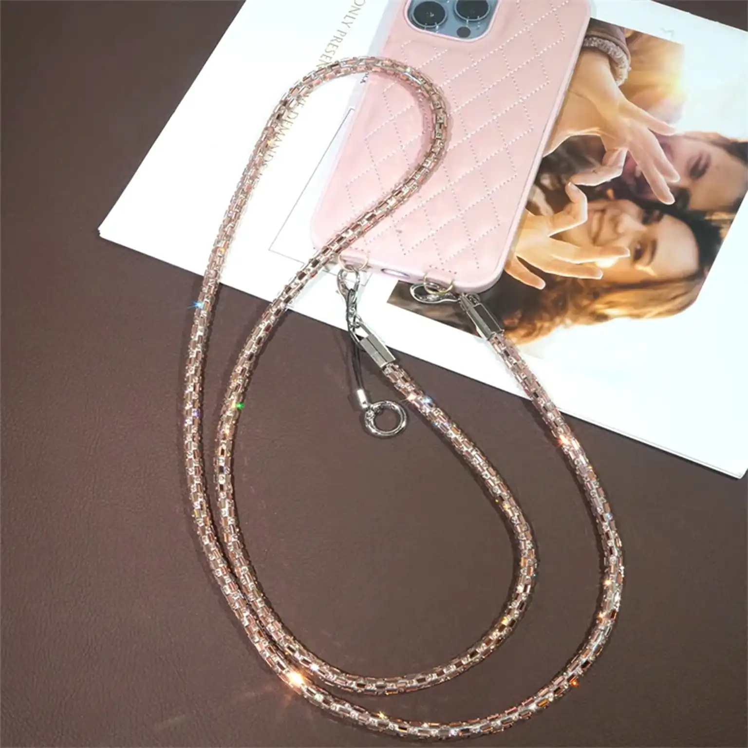Elevate your everyday carry with this sophisticated rhinestone-adorned mobile phone lanyard. Crafted from durable metallic material, it combines lightweight construction with exceptional resilience—resistant to cracking and deterioration for years of reliable use. The full diamond pendant design catches light beautifully, ensuring you stand out with understated elegance. Available in multiple color options to complement your personal style and wardrobe, this lanyard features replaceable handles for convenient maintenance. The short wrist style offers practical functionality without compromising on aesthetic appeal, making it an ideal accessory for those who value both durability and distinctive flair.